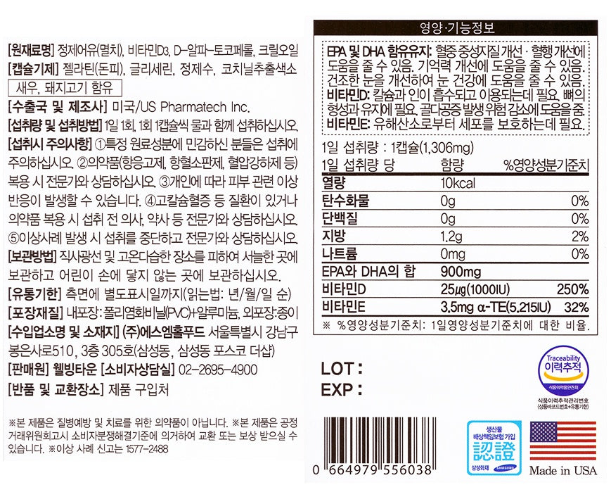 Ingredients: Refined fish oil (anchovy), vitamin D3, D-alpha-tocopherol, krill oil.