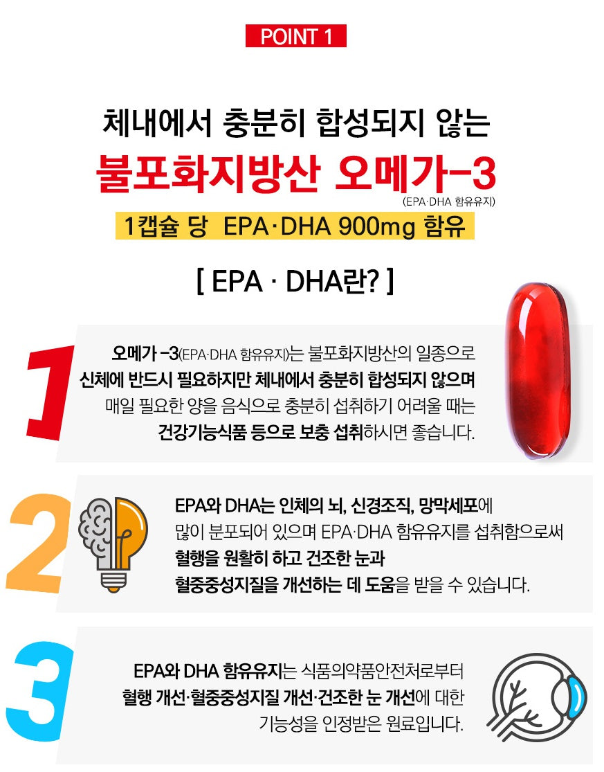 Oils and oils containing EPA and DHA are raw materials that have been recognized by the Ministry of Food and Drug Safety for their functions for improving blood circulation, improving blood triglycerides, and improving dry eyes.