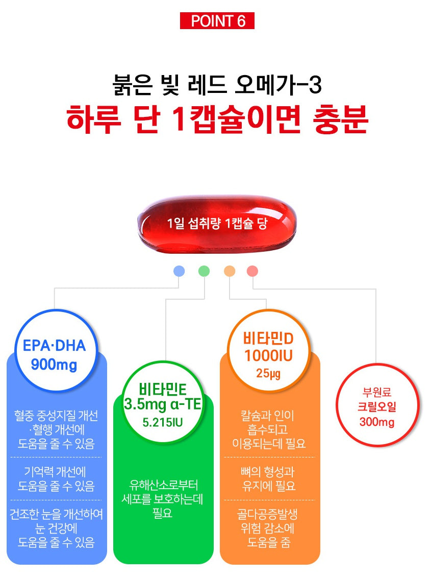5. Contains 300mg of solvent-free Antarctic krill oil as an auxiliary ingredient.
