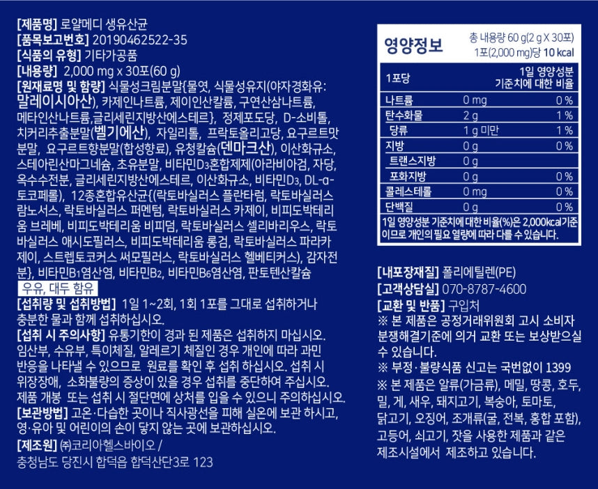 Kolon Pharmaceutical Royal Medi Probiotics 60g Gut Health Supplements Vitamin D