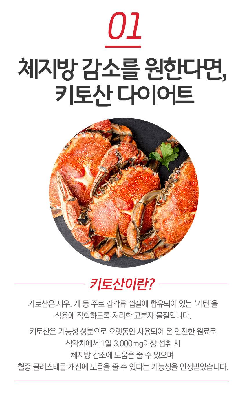 Kitosan is a processed substance that makes it easier to absorb the kitins on shell of crustaceans, such as crabs or shrimp. Because of various enzymes in the body, it is a polysaccharide that can eventually be absorbed by our body into acetyl glucosamine or chitiologosaccharide, which can help improve blood cholesterol and reduce body fat.