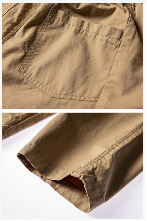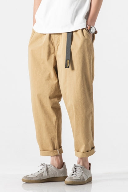 Beige Cotton Waistband Pants Mens Trousers Loose Fit Casual Streetwear