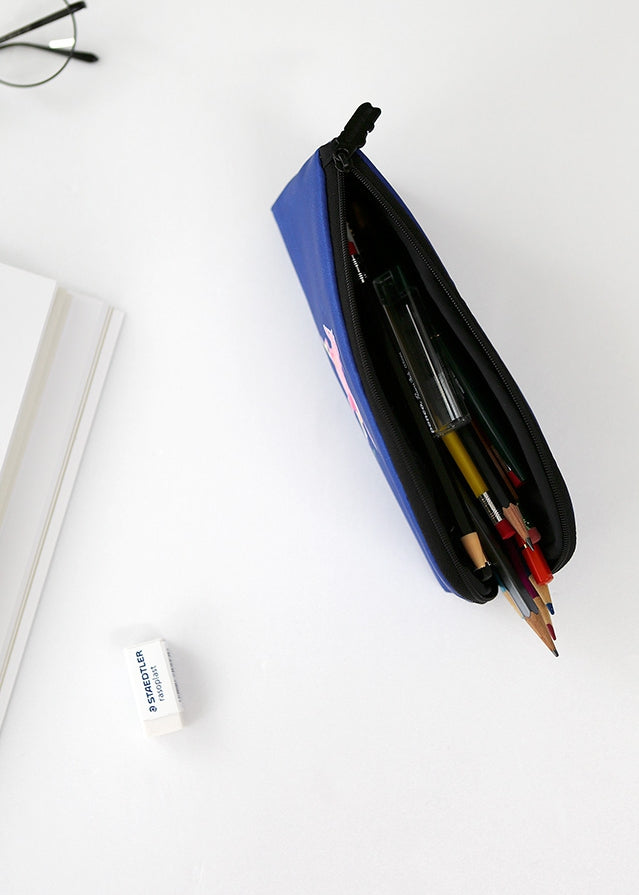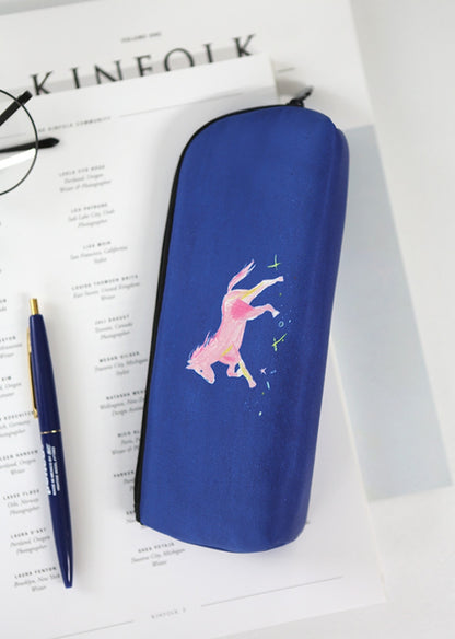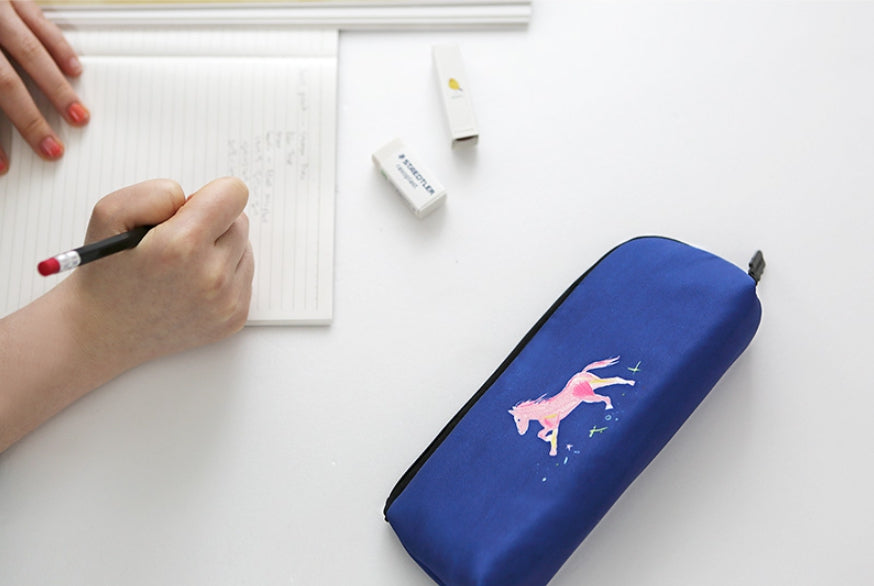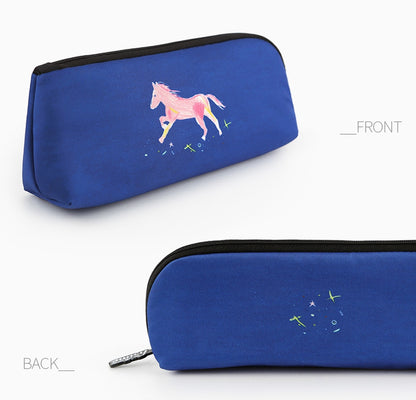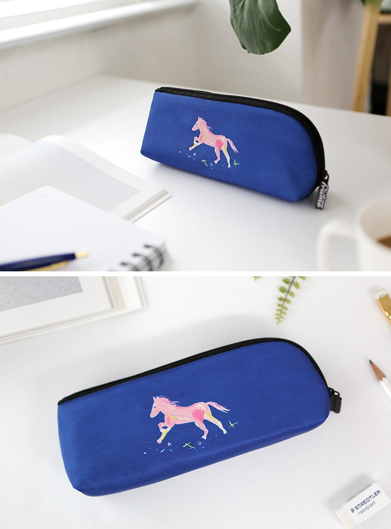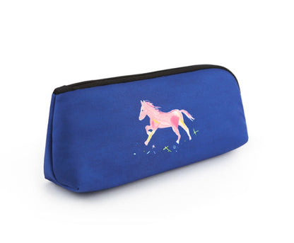 Blue Horse Graphic Pencil Cases Stationery Zipper School 19cm Office Cosmetics Pouches Artists Designer Prints Gifts Bags Purses Students Girls Cute Teens Inner Pocket