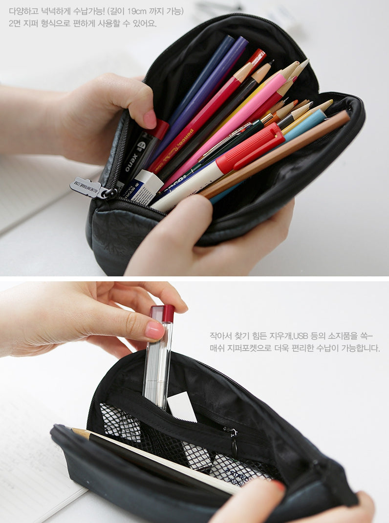There is a mesh pocket on the inside, so you can organize your stationery and small items without falling apart.