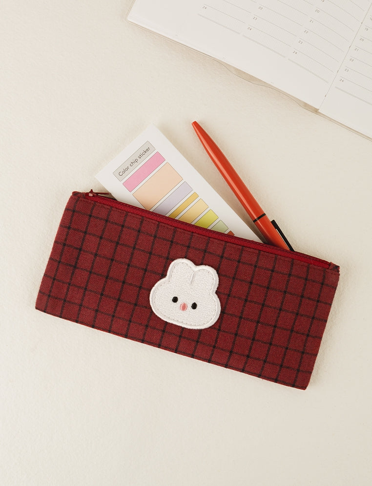 Checked Wappen Cat Bear Rabbit Pencil Cases Stationery Zipper School Office Cosmetics Pouches Artists Designer Gifts Bags Purses Students Girls Erasers Slim