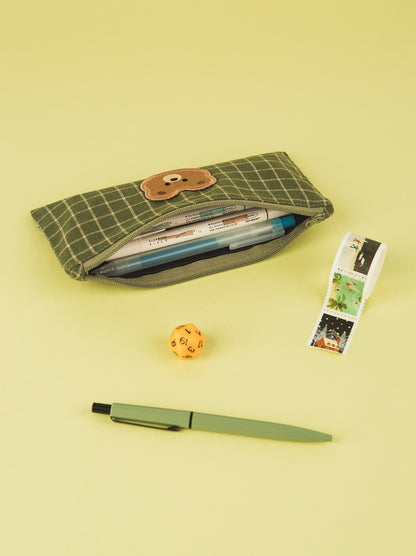 It is a pencil case with an embroidered waffle pen containing cute animal friends.