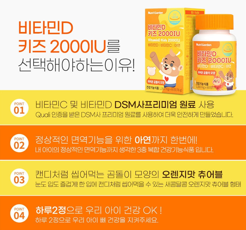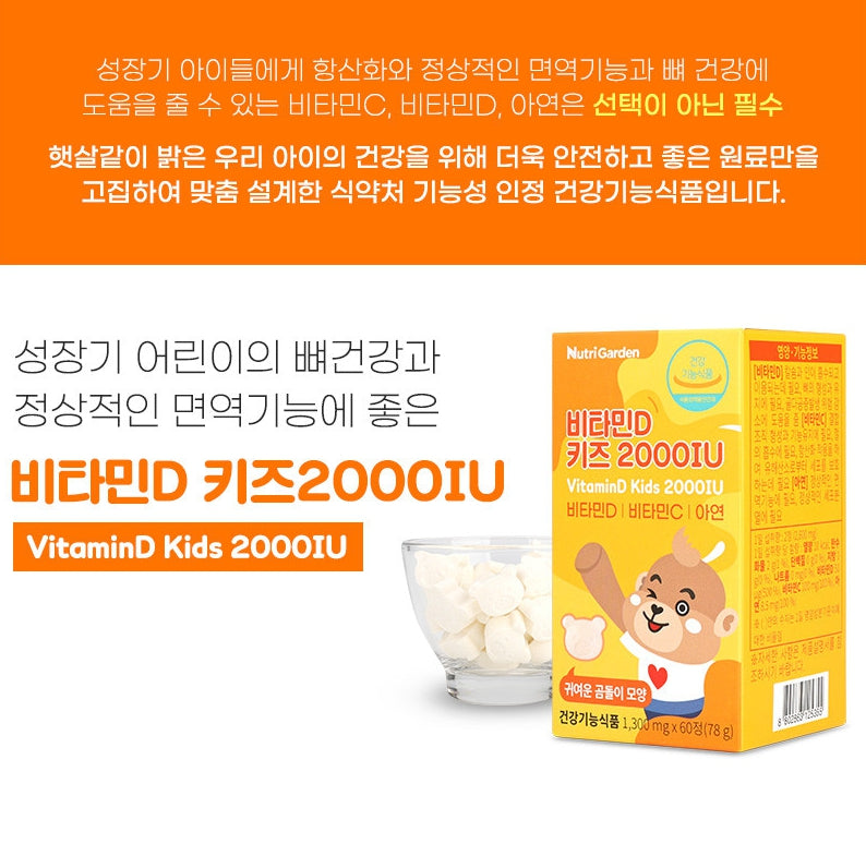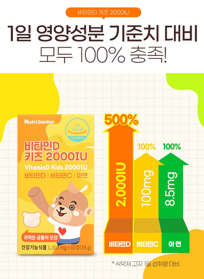 Nutri Garden VitaminD Kids 2000IU 60 Tablets Children Health Supplements Vitality Immunity Bone Zinc Foods