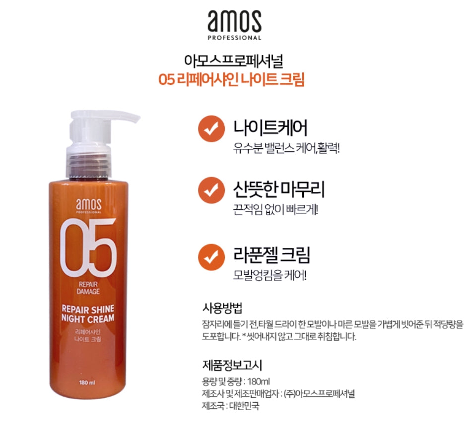 Amos 05 Repair Shine Night Cream 180ml Non Wash Hair Nourishing Treatment