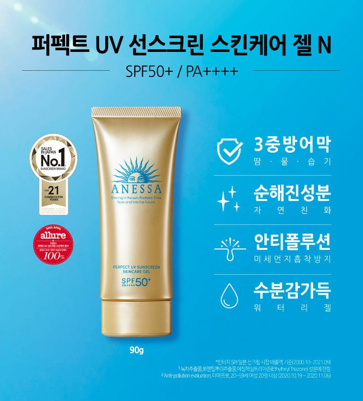 Anessa Perfect UV Sunscreen Skincare Gel N SPF50+ PA++++ 90g Facial Sunblock Makeup Base Moisture