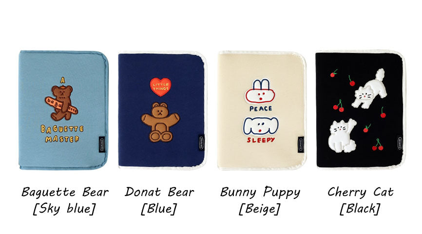 Style: Baguette Bear[Sky blue], Donat bear[Blue], Bunny Puppy[Beige], Cherry Cat[Black].