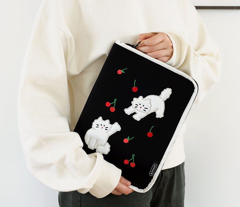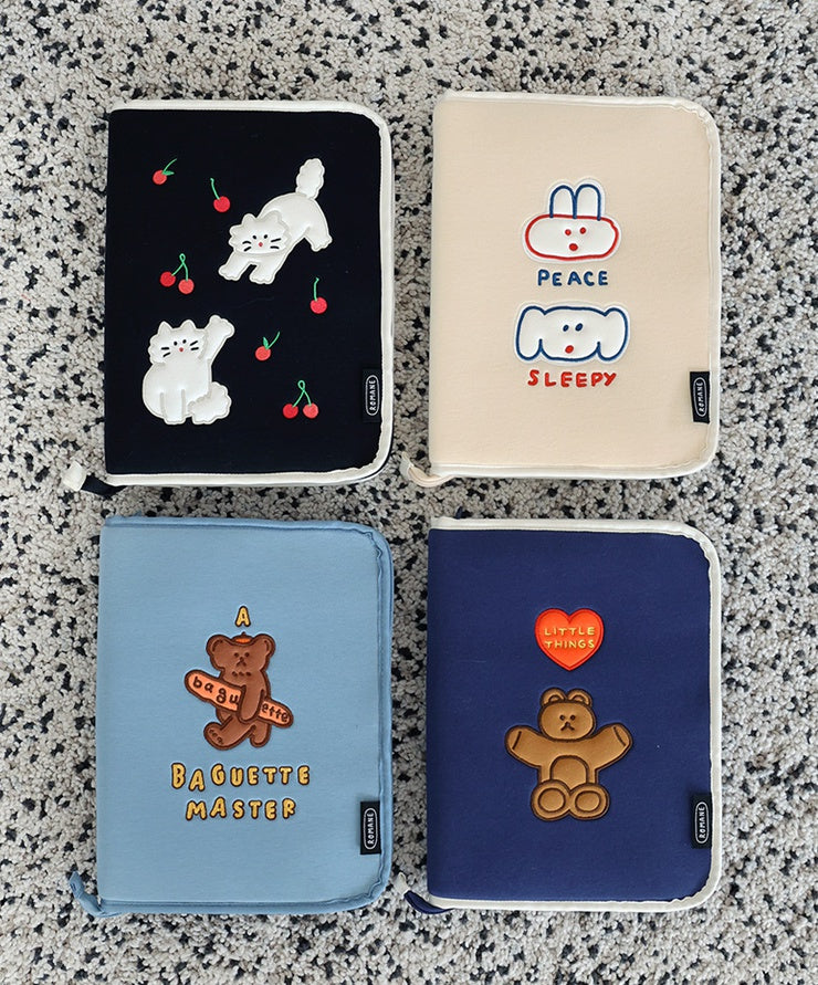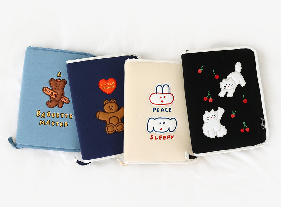 This is a cute Bear and patches Laptop pouch to protect your notebook.