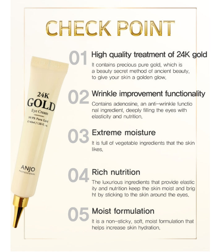 Anjo 24k Gold Eye Creams Anti Ageing Wrinkles Womens Skin Care Cosmetics Fine Lines Crows Feet