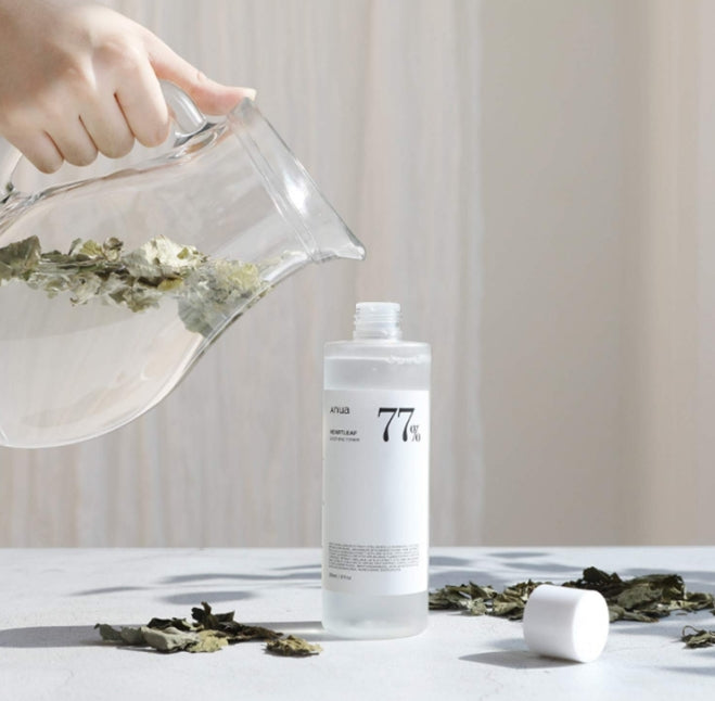 moisturizing toner formulated with 77% Houttuynia Cordata Extract that helps soothe sensitive skin and protect the skin from external irritations.