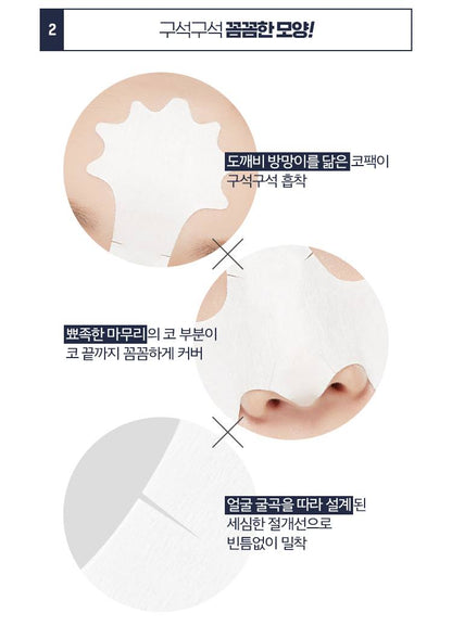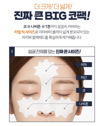 How to Use: Remove the clear film of the large nose pack with dry hands after washing, apply sufficient water to the area of use, and attach the nose pack to the forehead and nose area. After 10 to 15 minutes, slowly remove the nose pack from the edge when it is completely dry.
