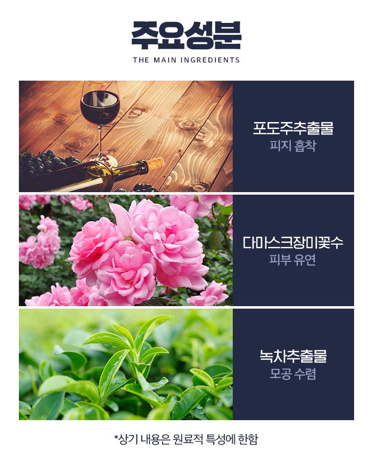 Main ingredients: wine extract, damask rose number, green tea extract.