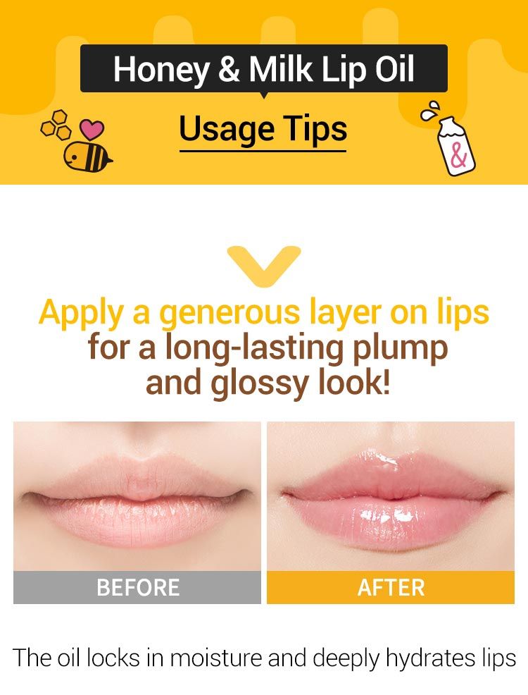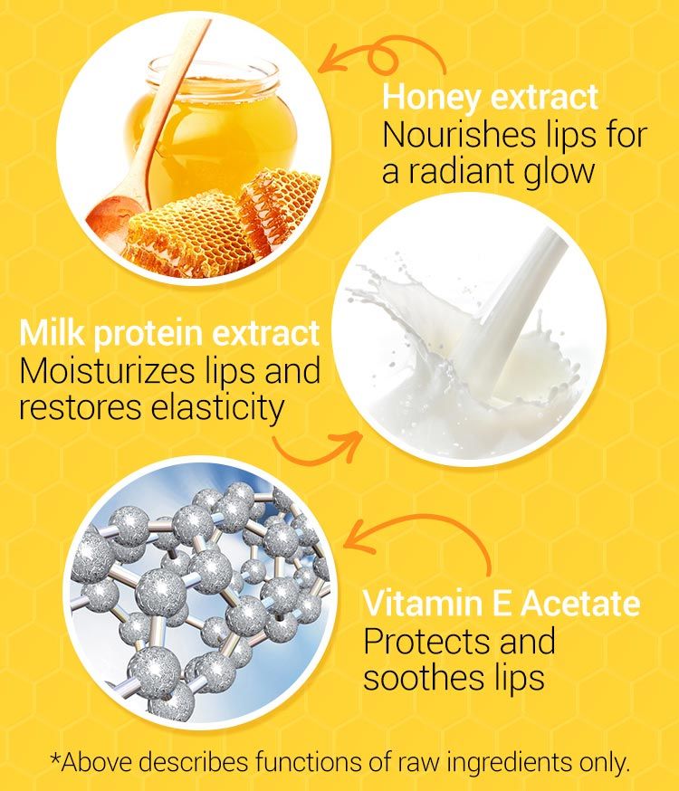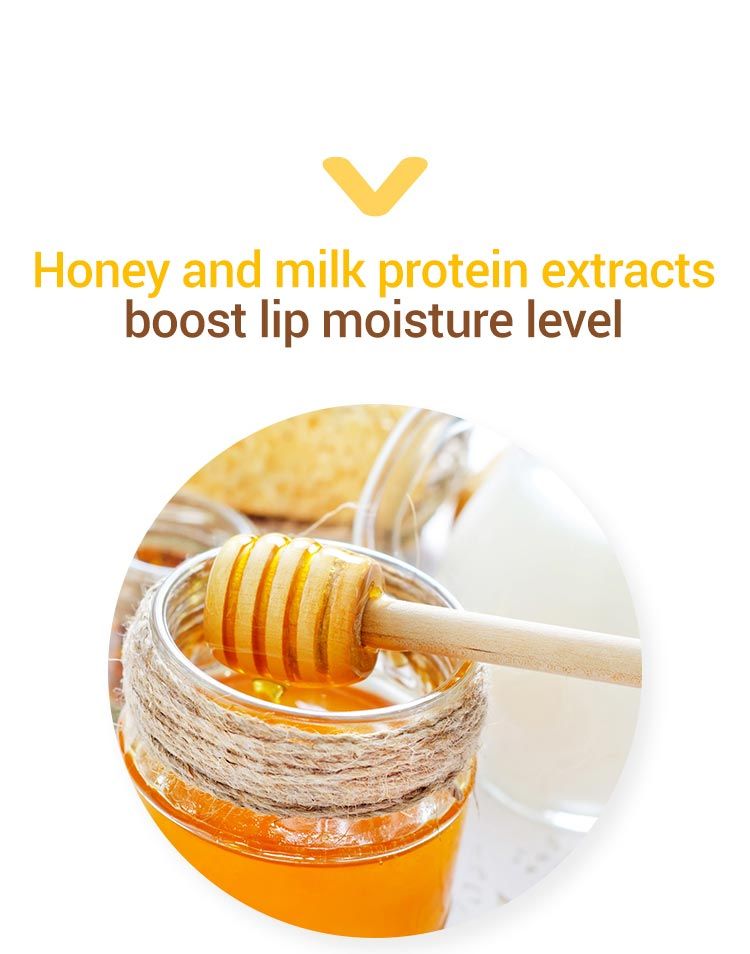 It is an oily body that adheres tightly to the lips for a long time to make the lips soft. Honey extract and milk protein extract form a moisturizing layer on the lips to make them healthy and smooth lips.