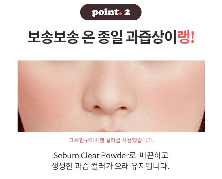 It's a blusher that gives a clear and natural feeling as if you're grinding a fine fruit on your cheek.It erases thick or thick ball makeup and applies it transparent and thin to create a clear and natural ball.Sebum Clear Powder Maintains the Color of Smooth and Bright Fruit for a Long Time