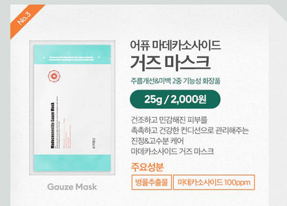 Set composition - ampoule: This ampoule effectively concentrates the bottle glue to help improve skin damage caused by drying. - Cream: It is a cream that helps improve skin damage caused by drying in a hazardous environment. - Gauze Mask: It is a mask pack that manages dry and sensitive skin in a moist and healthy.