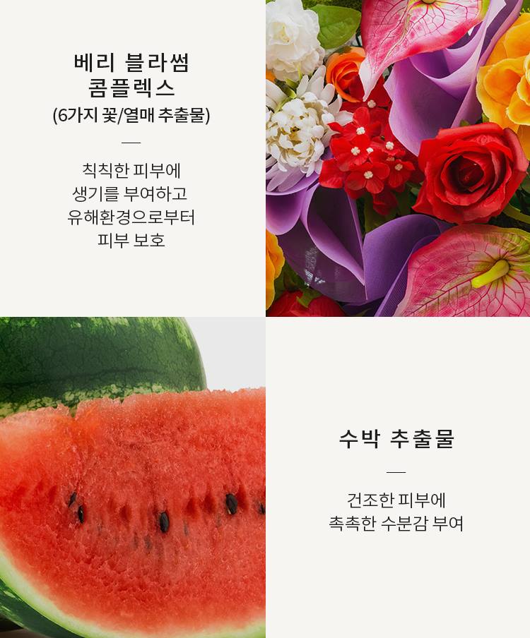 aloe vera leaf extract, berry blossom complex, watermelon extract,
