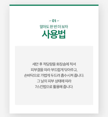 How to Use: After washing your face, wet the cotton pad with a suitable amount and gently wipe along the skin texture. Tap it lightly with your palm to absorb it.