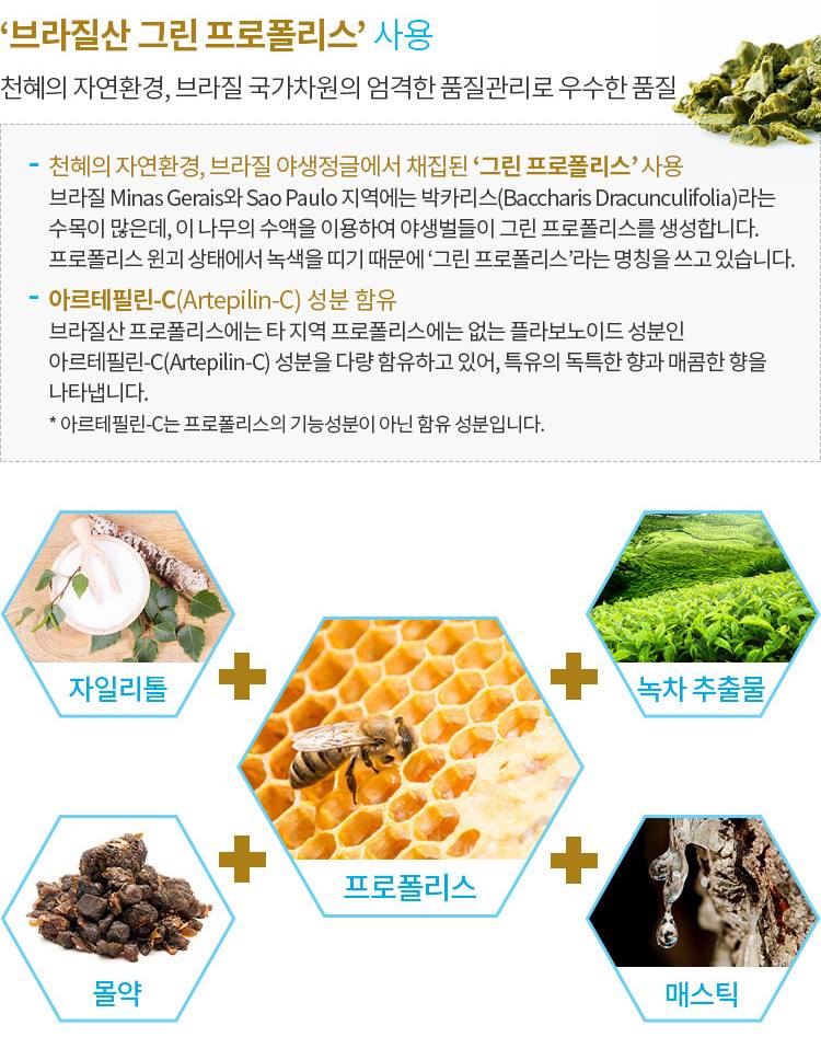 propolis, xylitol, green tea extract, myrrh, mastic