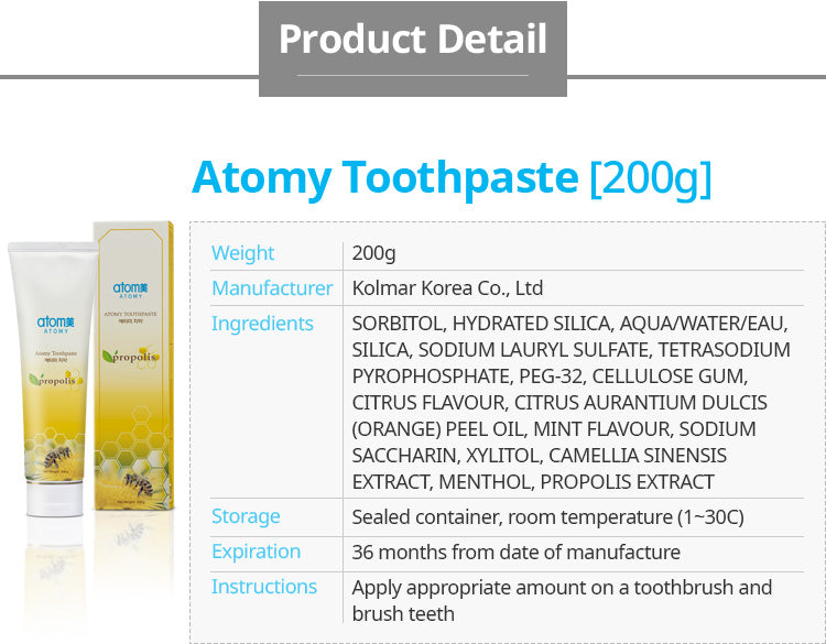 ATOMY Toothpaste 200g Propolis Dental Care Oral Xylitol