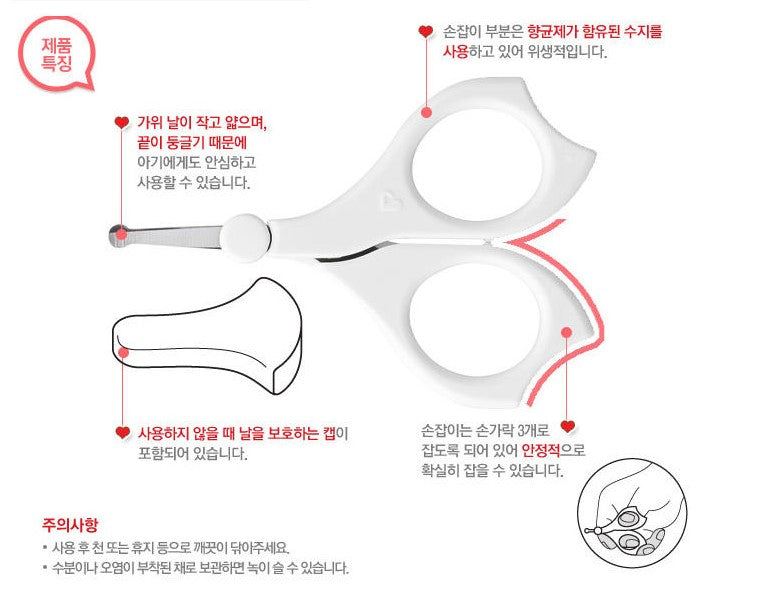 -The scissors blade is small and thin, and the end is round, so it can be used safely even for babies.