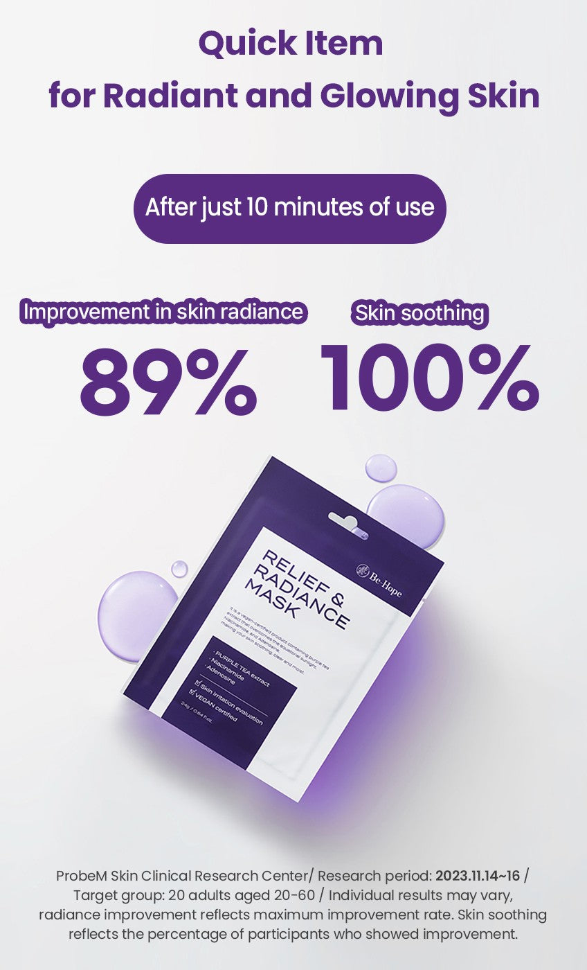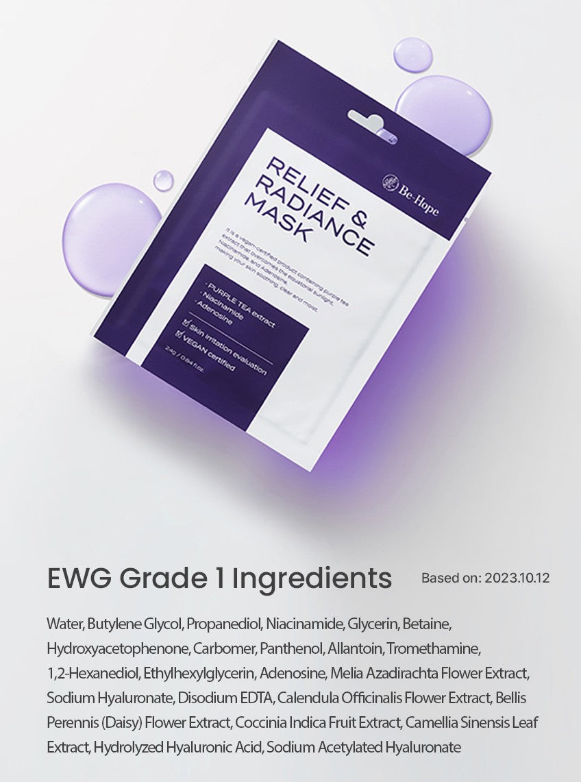 Be-Hope Luxury Vegan Relief & Radiance Masks 5 Sheets Whitening Wrinkle