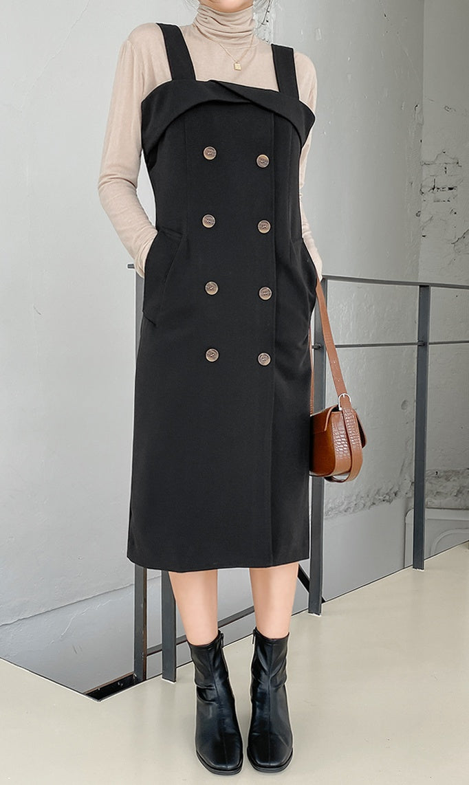 Sleeveless, trendy suspenders detail, gorgeous and career mood slim dresses for dating, party, work, wedding, dinner.