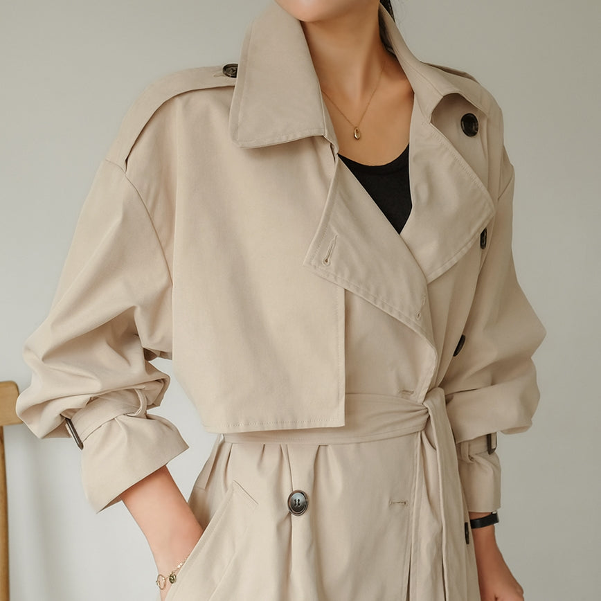 Classic double-breasted trench coats for women. Long sleeves, gorgeous and career outerwear for dating, party, work, wedding, dinner.