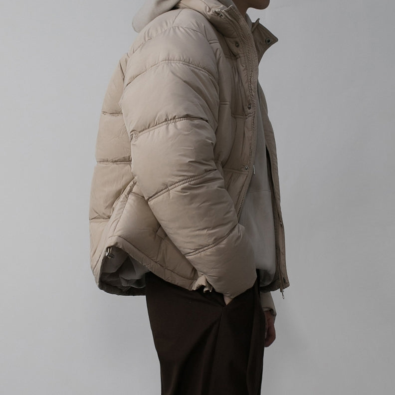 Beige Mens Short Puffers Winter Outerwear Outfits Kpop Style Coats Clothing