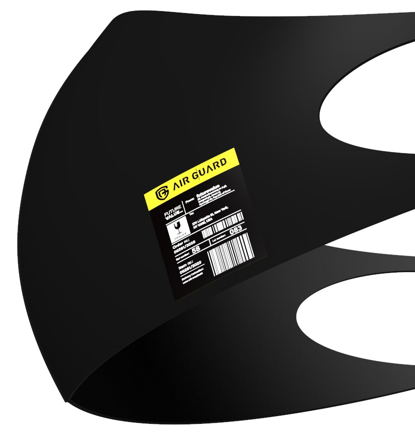 Black Air Guard Face Masks Label Seamless Breathable Washable Reusable Comfortable non-woven cloth lightweight UV protection