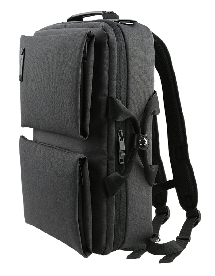 Multi backpacks for men and women. Casual canvas square backpacks, available use as totes, shoulder bags, cross-body. Laptop sleeve protection book bags.