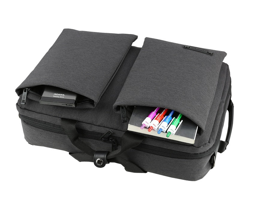 Embellishment: 15" Laptop Sleeve, Outer pocket, Across buckle, Shoulder strap.