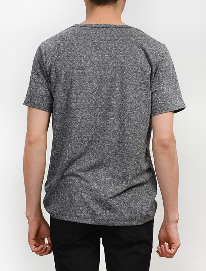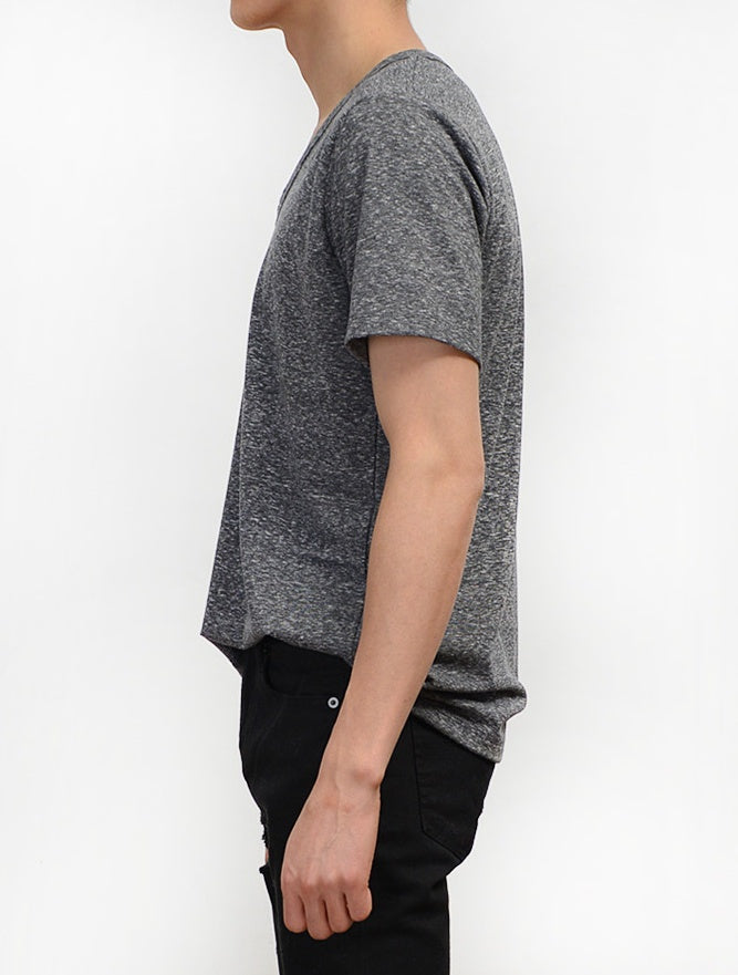 Black Casual Short Sleeve Tshirts Mens Tees Slub Fabric Scoop Neck Tops