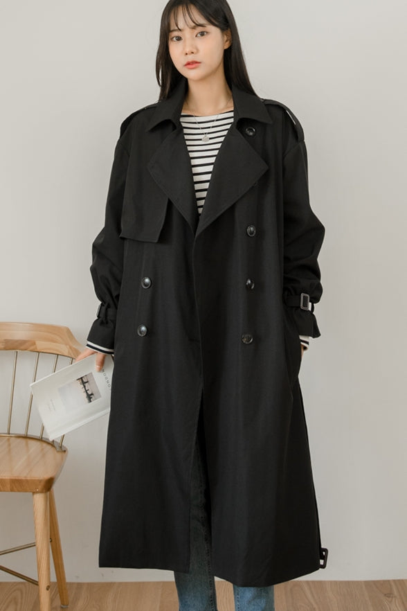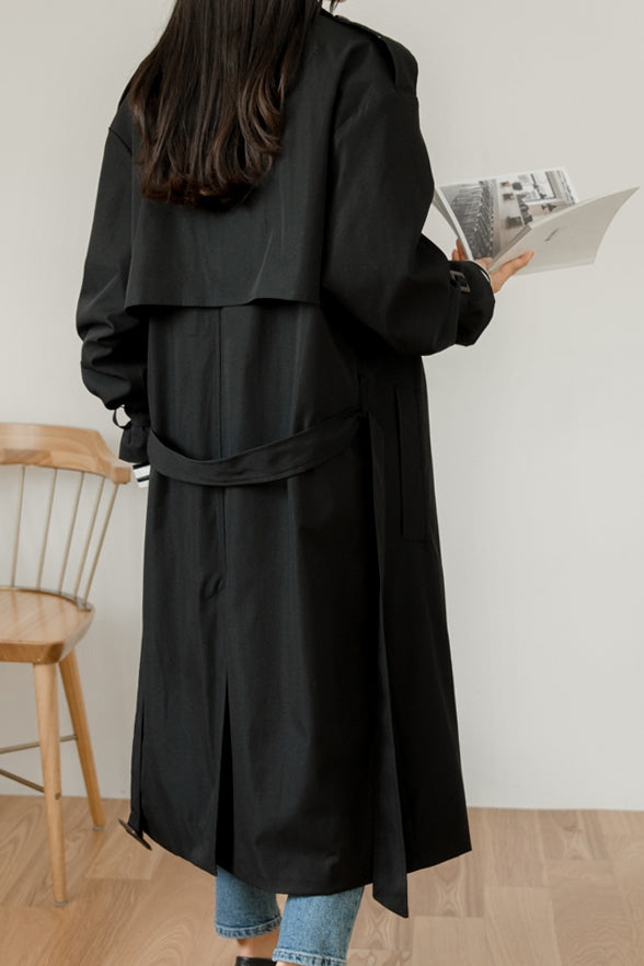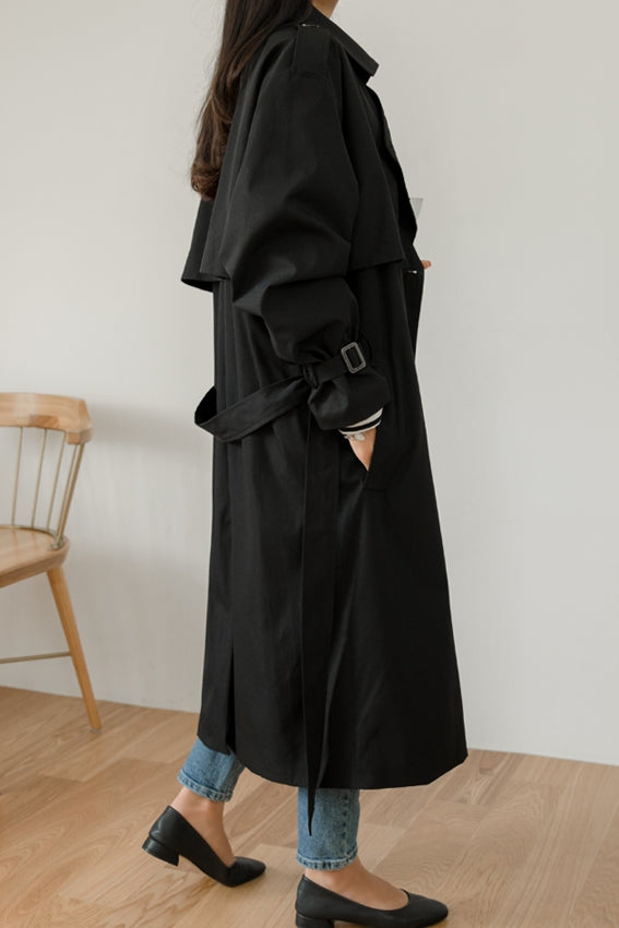 Black Classic Double Breasted Trench Coats For Womens Cotton Blend New