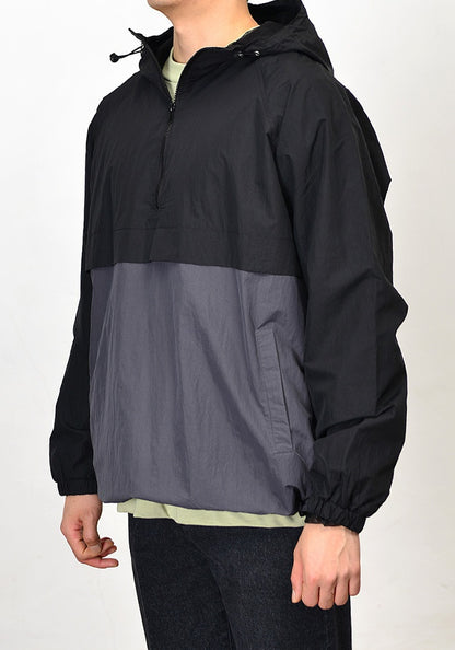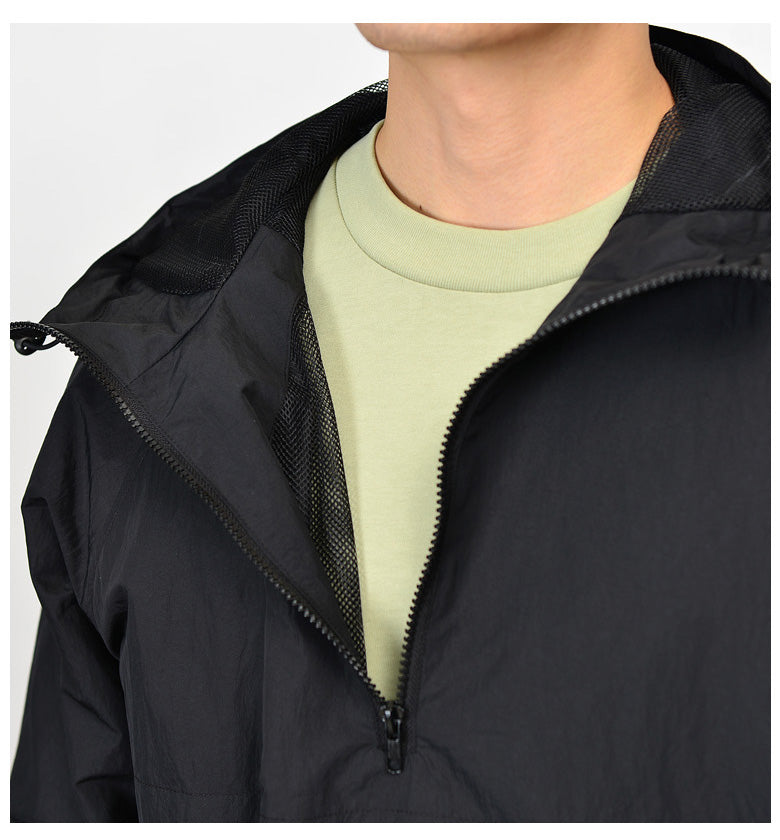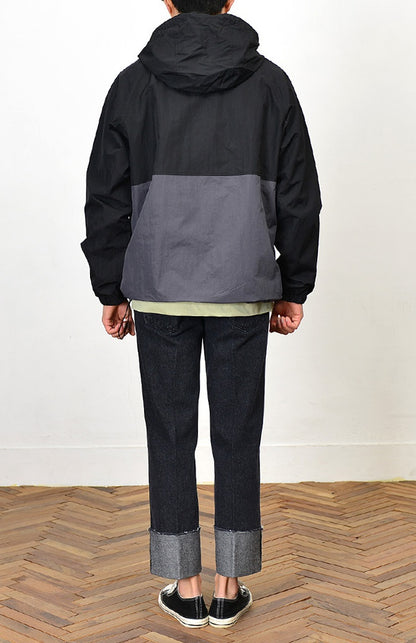 Korean trend streetwear for men. Color-blocked, hooded windbreaker jackets for men. K-pop style fashion outfit for travel, outdoor, athletic. Inner mesh with.