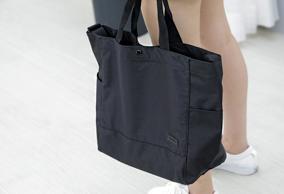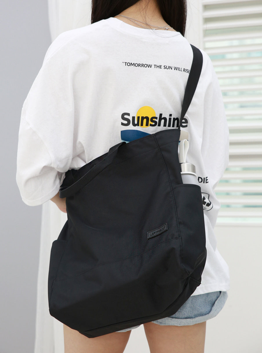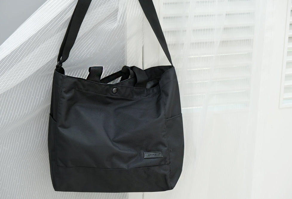 Casual crossbody bags for men and women. Unisex shoulder purses with bottle pocket at side. Oxford purses for school, picnic, weekend. Made in Korea.