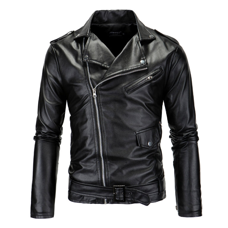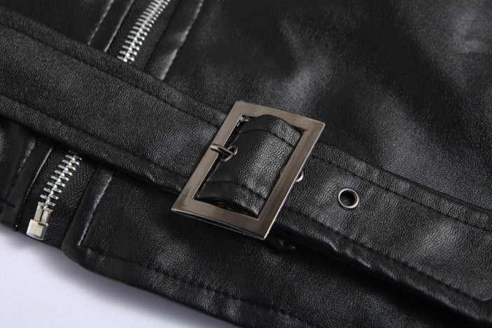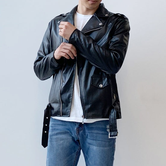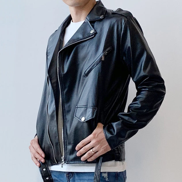 Black Faux Leather Jackets Mens Motorcycle Biker Kpop Clubber Slim Fit