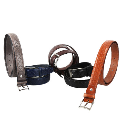 Classic leather belts for men. Mesh designed accessories with square buckle. Belt for business, casual, suits. Stylish guys essential belts, made in Korea.
