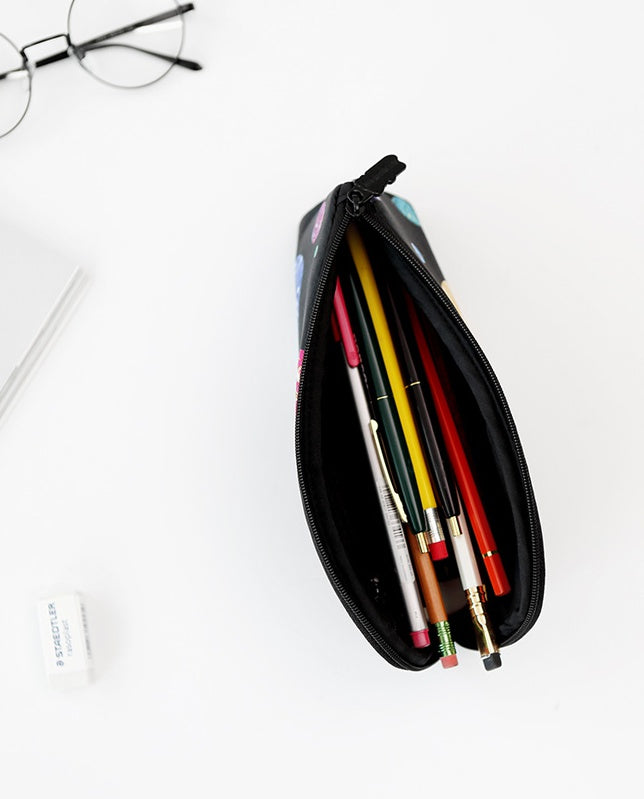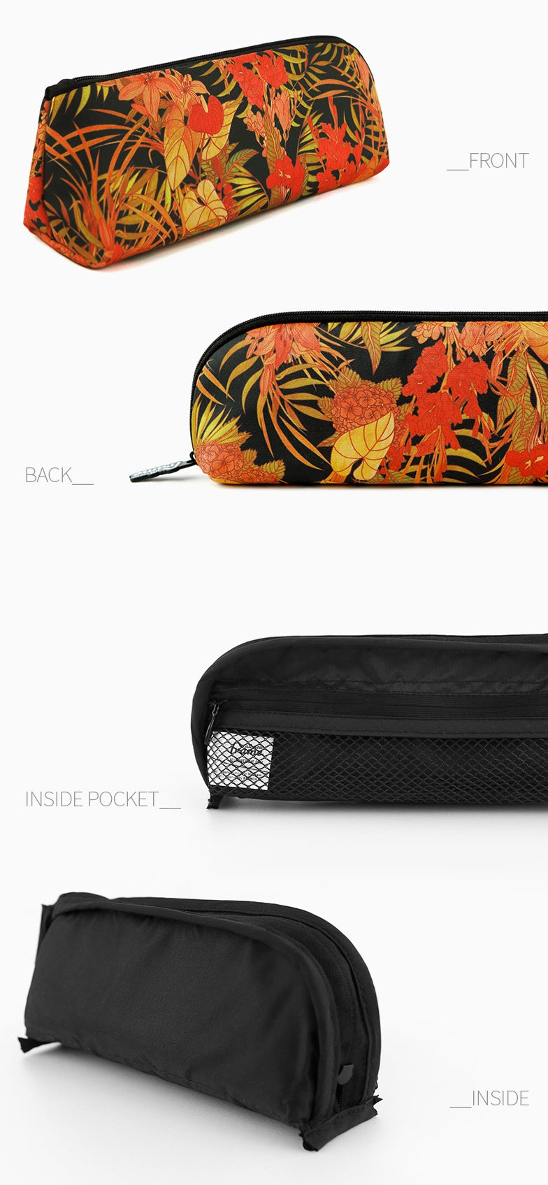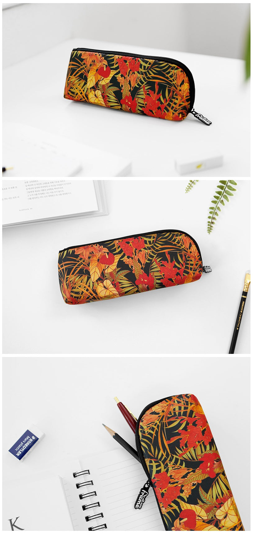 Black Orange Tropical Floral Flower Graphic Pencil Cases Stationery Zipper School 19cm Office organizers cosmetic pouches Gifts Bags Purses