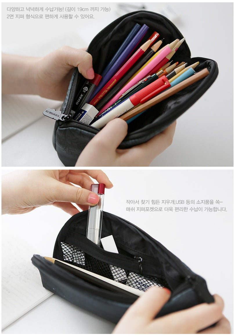 There is a mesh pocket on the inside, so you can organize your stationery and small items without falling apart.