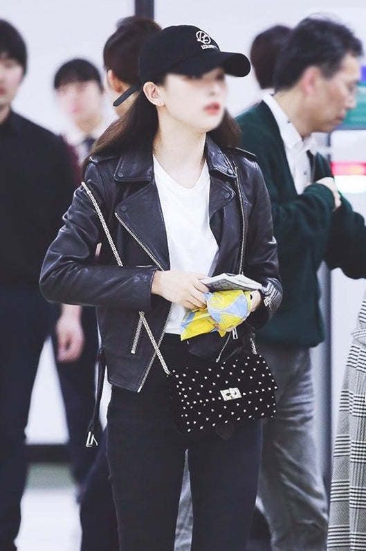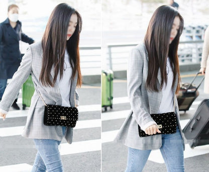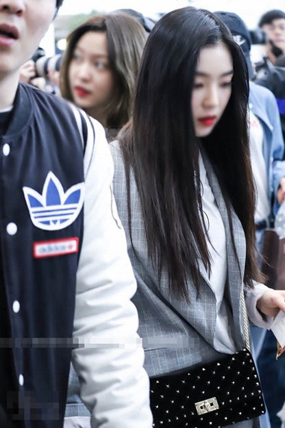 Black Red Velvet Kpop Girl Irene Studded Chain Crossbody Handbag Purse