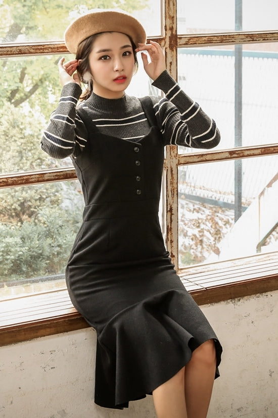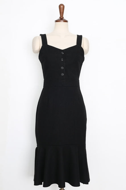 Black Ruffled Hem Casual Dresses