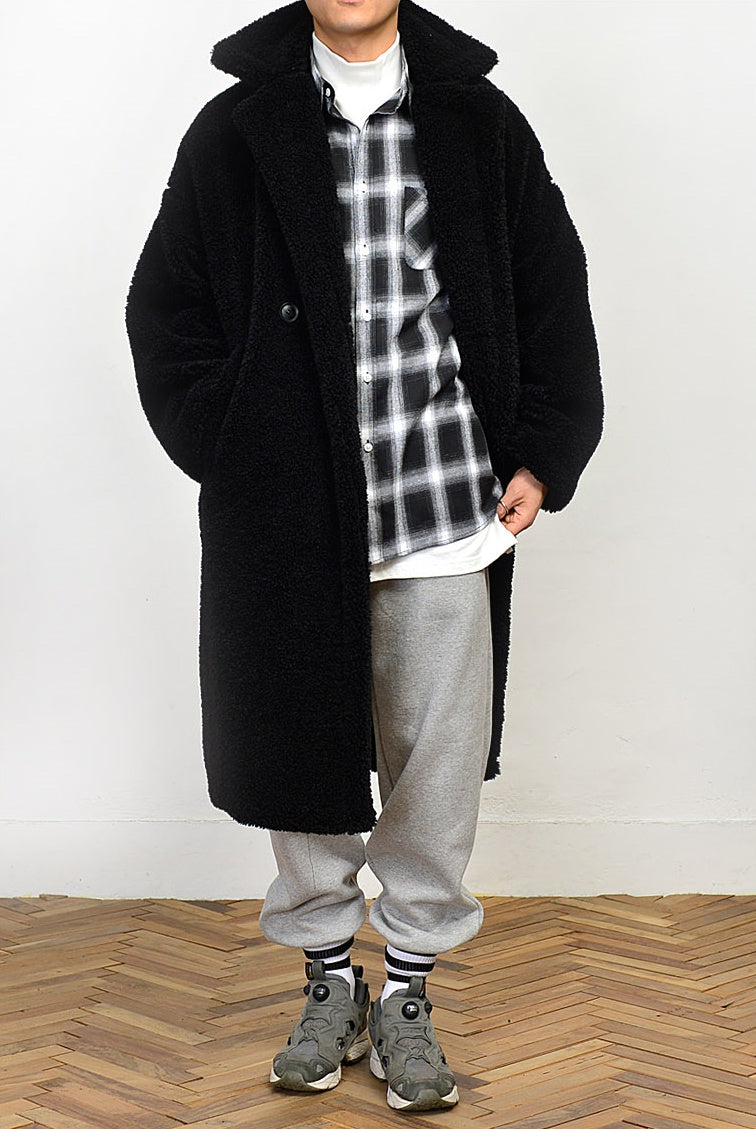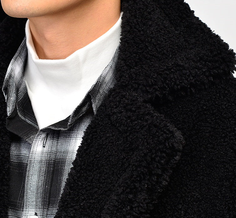 Lightweight and stylish! Shearing winter long coats for men. Oversized loose fit outerwear, Kpop style Korean fashion outfit for party, wedding, dinner, dating.