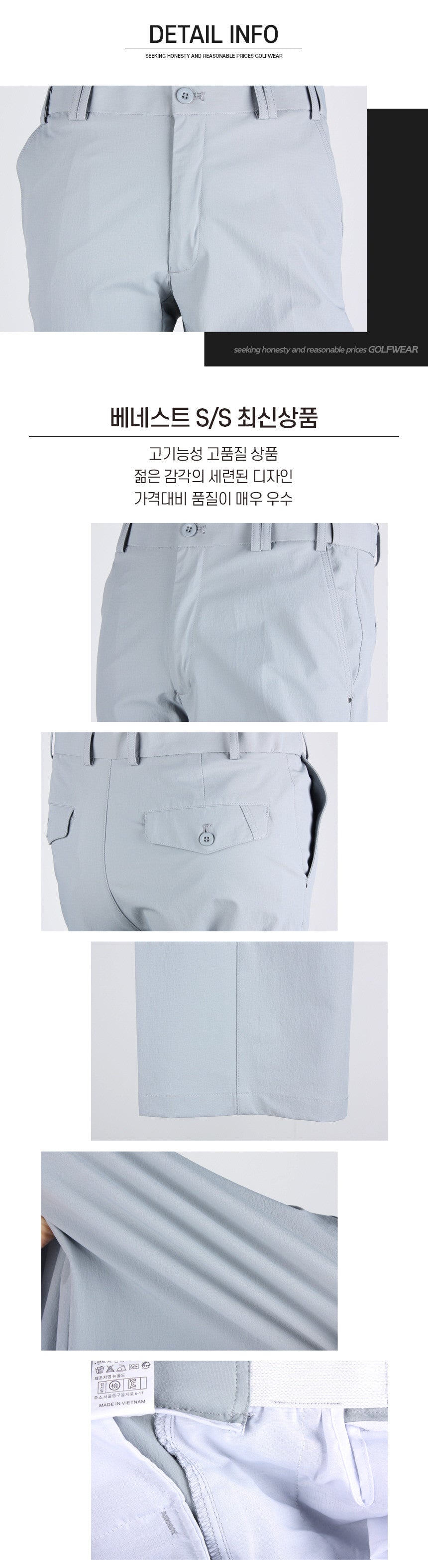 Features: 2 Front pocket, UV cut, stretch up, water repellent, Hidden waist band.