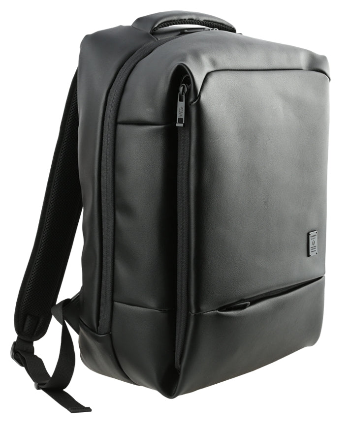 Black USB PORT Rechargeable Faux Leather Backpacks