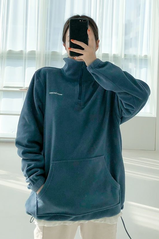 Blue Casual Shearling Fleece Pullover Womens Zipup Mockneck Sweaters