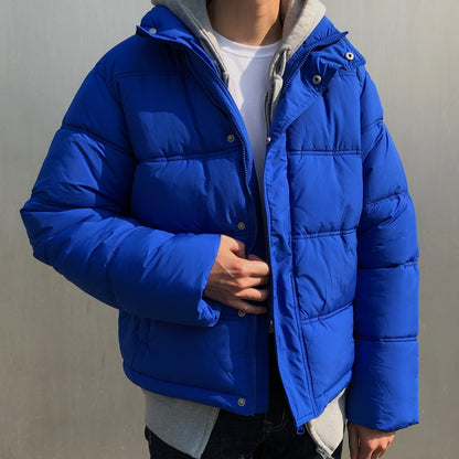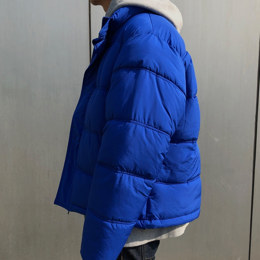 Blue Mens Short Puffers Winter Outerwear Outfits Kpop Style Coats Clothing