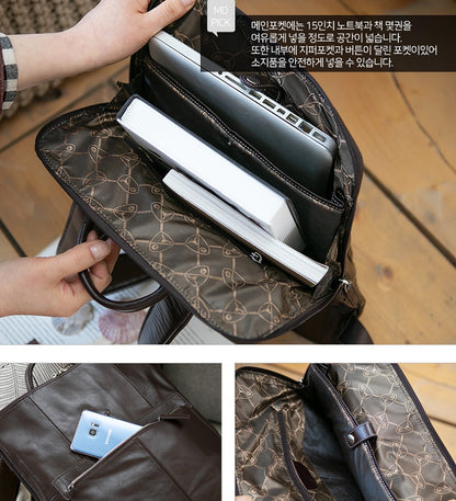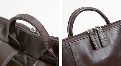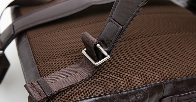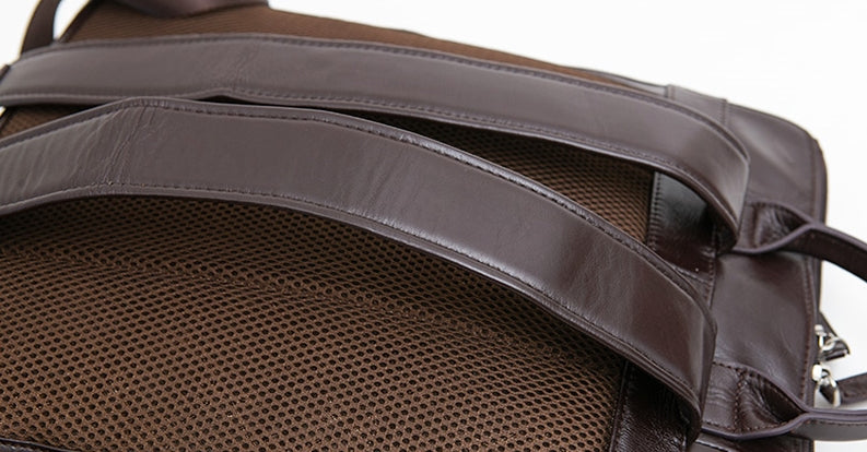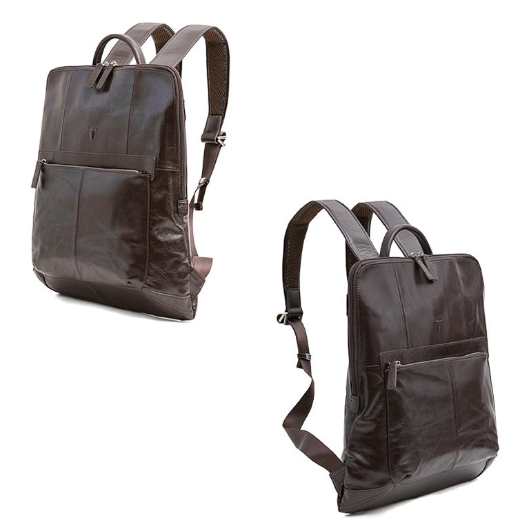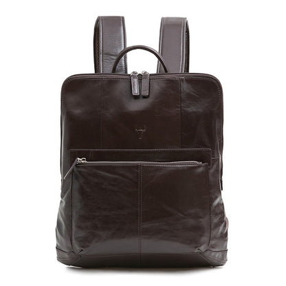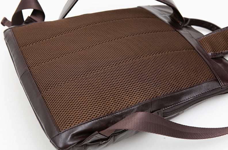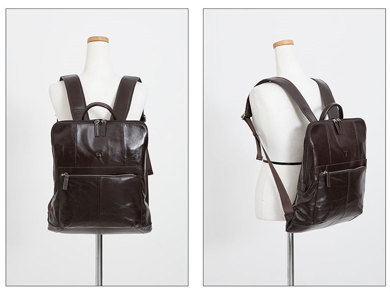 Brown Classic Genuine Cowhide Leather Laptop Mens Backpacks Square New